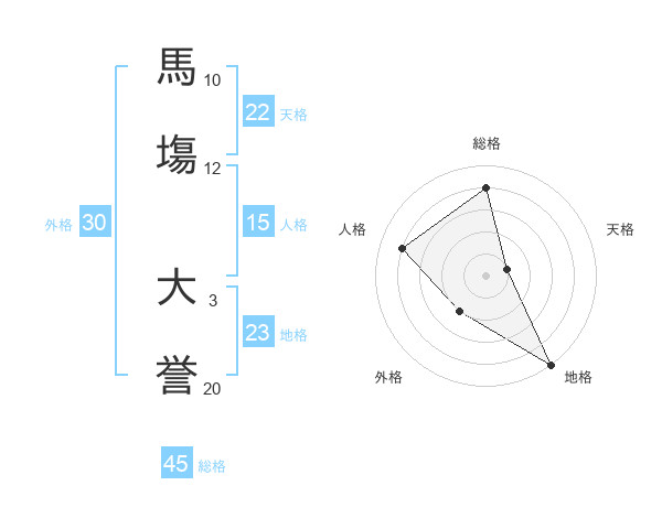 馬塲 大誉さんを姓名の画数から五運を鑑定