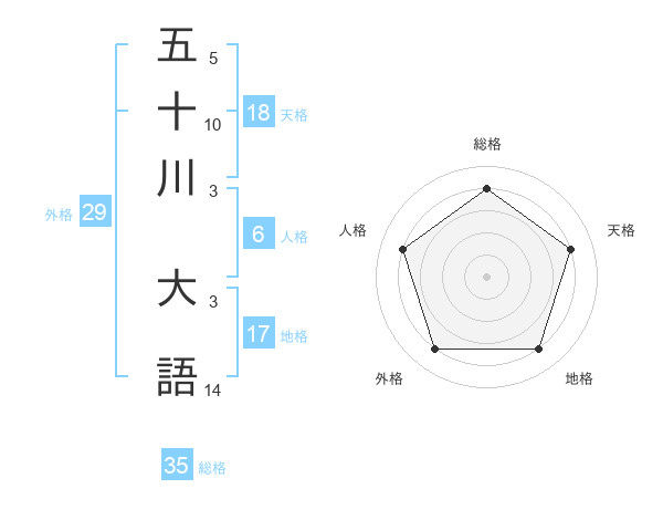 五十川 大語さんの総格は35画の4点