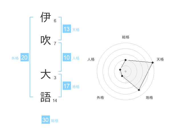伊吹 大語さんを姓名の画数から五運を鑑定