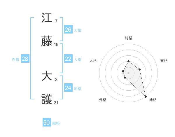 江藤 大護さんの総格は50画の2点!