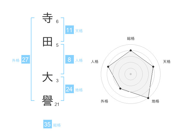 寺田 大譽さんの地格は24画の5点!