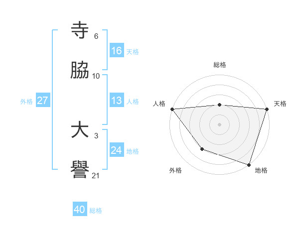 寺脇 大譽さんを姓名の画数から五運を鑑定
