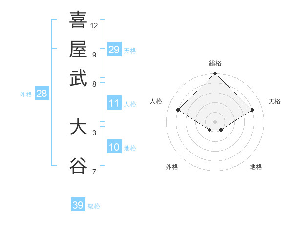 喜屋武 大谷さんを姓名の画数から五運を鑑定