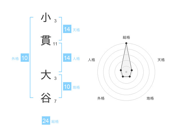 小貫 大谷さんの総格は24画の5点!