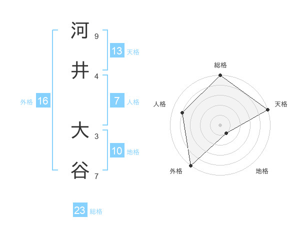 河井 大谷さんの天格は13画の5点!