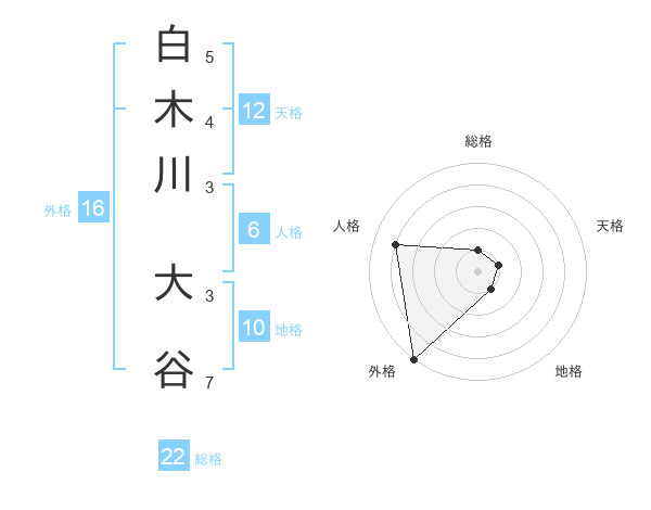 白木川 大谷さんの総格は22画の1点!