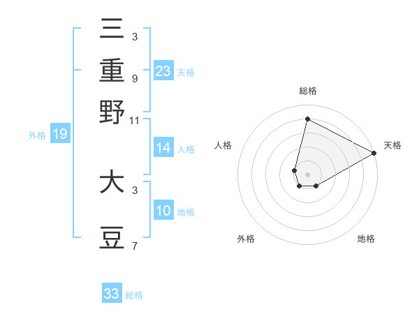 三重野 大豆さんを姓名の画数から五運を鑑定