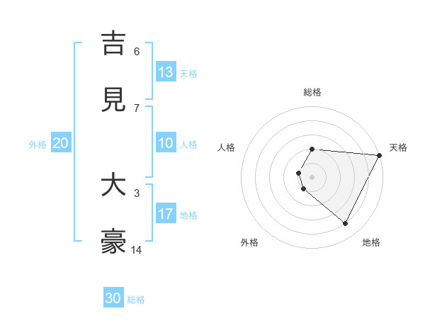 吉見 大豪さんを姓名の画数から五運を鑑定