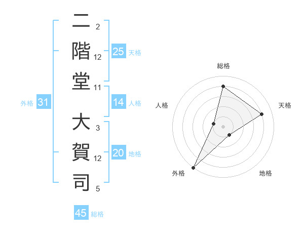 二階堂 大賀司さんを姓名の画数から五運を鑑定