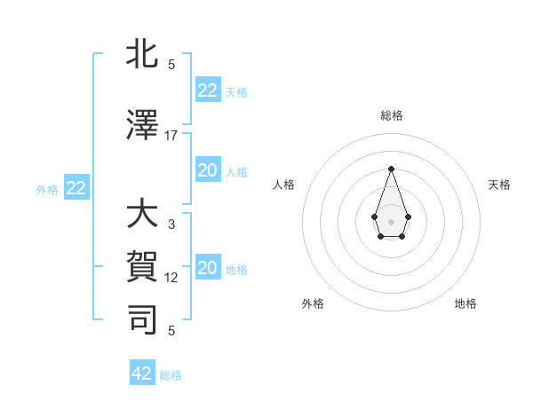 北澤 大賀司さんの総格は42画の3点!