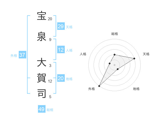 宝泉 大賀司さんを姓名の画数から五運を鑑定