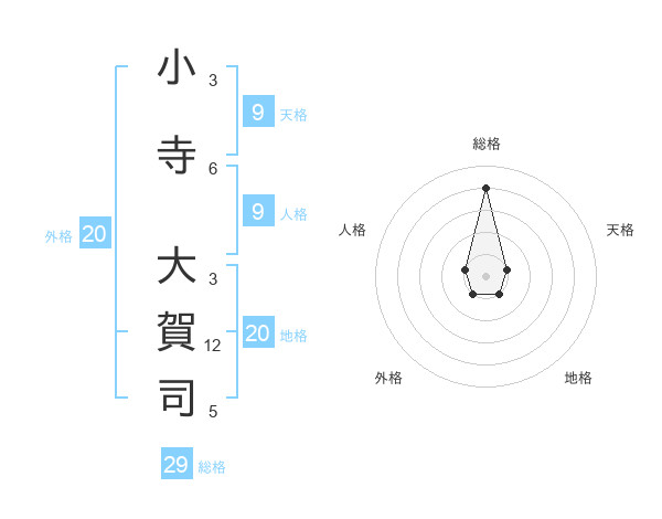 小寺 大賀司さんを姓名の画数から五運を鑑定