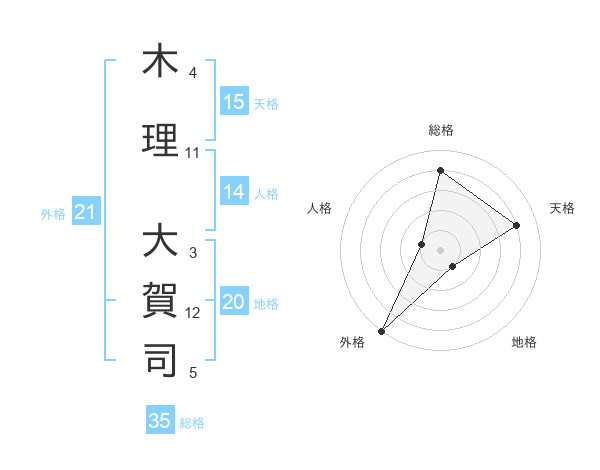 木理 大賀司さんを姓名の画数から五運を鑑定