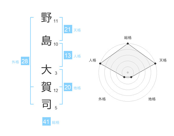 野島 大賀司さんを姓名の画数から五運を鑑定