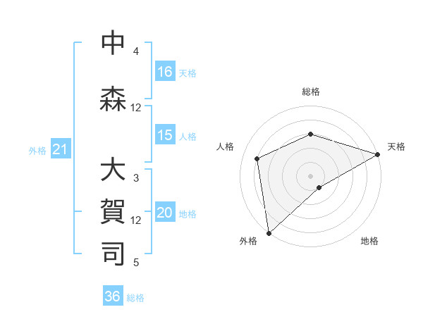 中森 大賀司さんを姓名の画数から五運を鑑定