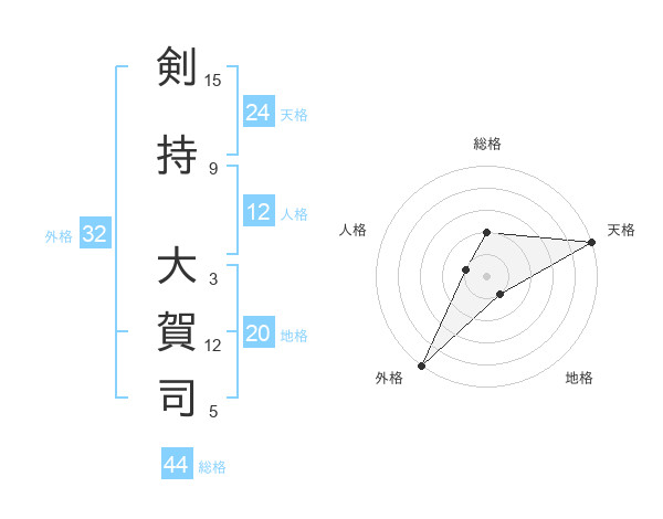 剣持 大賀司さんを姓名の画数から五運を鑑定