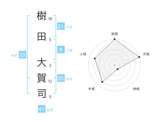 樹田 大賀司さんを姓名の画数から五運を鑑定