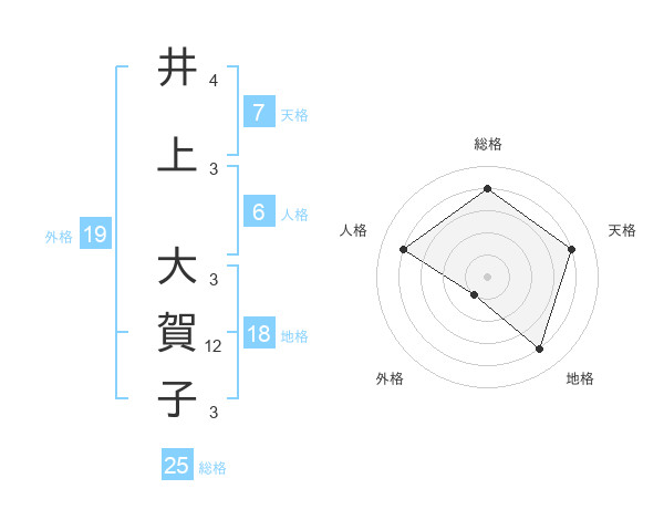 井上 大賀子さんを姓名の画数から五運を鑑定