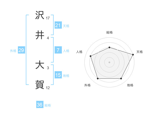 沢井 大賀さんの天格は21画の5点!