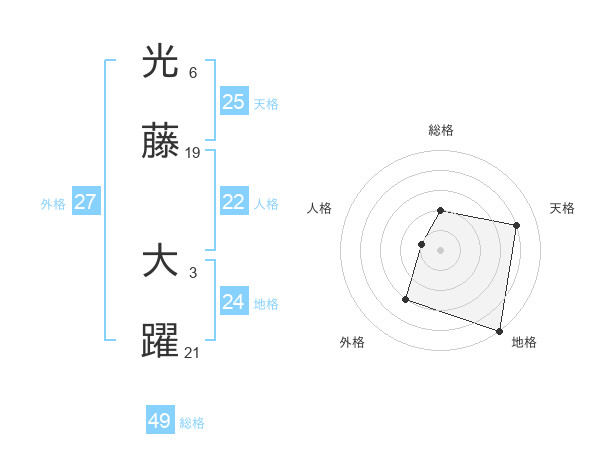 光藤 大躍さんを姓名の画数から五運を鑑定