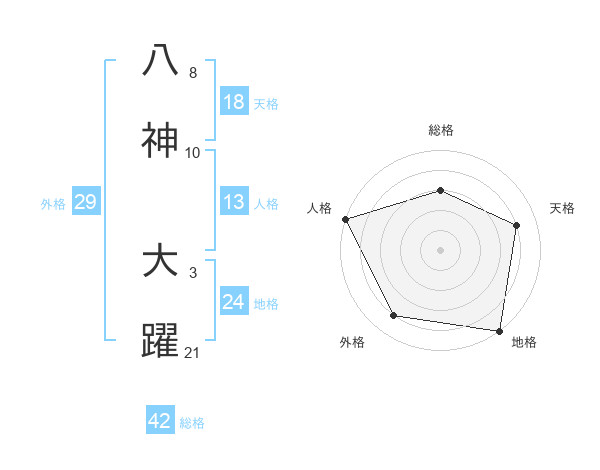 八神 大躍さんの総格は42画の3点!