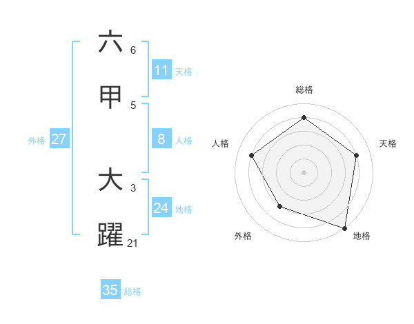 六甲 大躍さんを姓名の画数から五運を鑑定