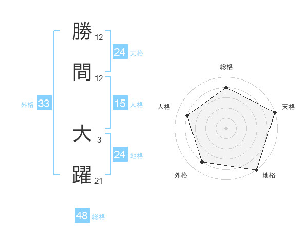 勝間 大躍さんの天格は24画の5点!