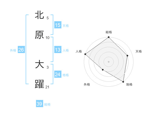 北原 大躍さんの総格は39画の5点!