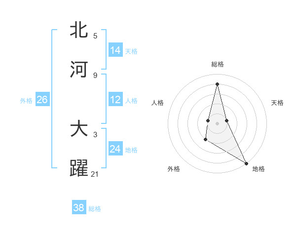 北河 大躍さんの総格は38画の4点!