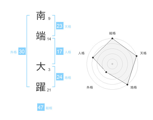 南端 大躍さんの総格は47画の5点!