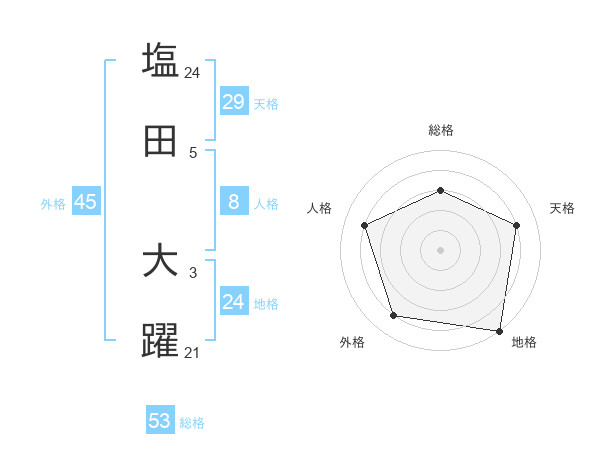塩田 大躍さんの総格は53画の3点!