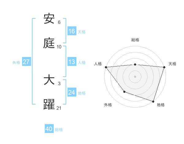 安庭 大躍さんを姓名の画数から五運を鑑定