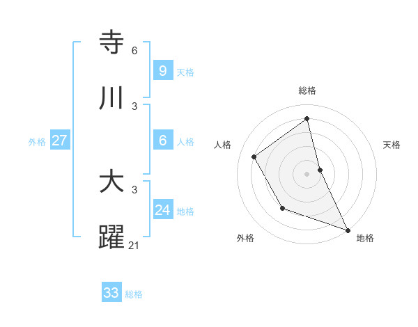 寺川 大躍さんの総格は33画の4点!