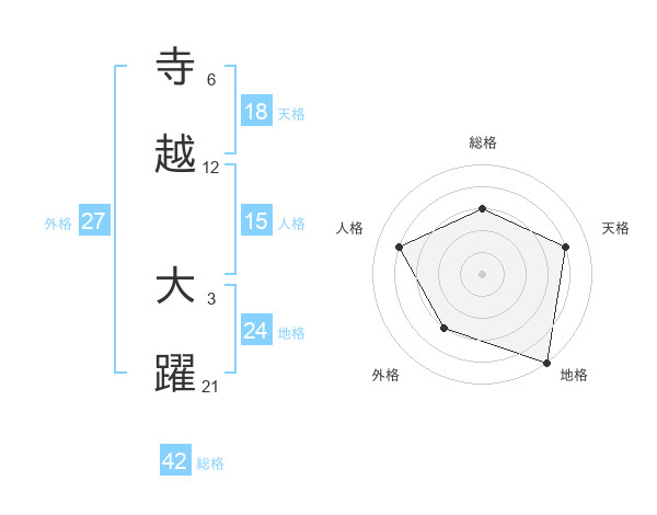 寺越 大躍さんを姓名の画数から五運を鑑定