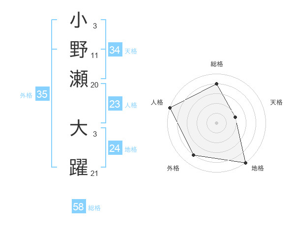小野瀬 大躍さんを姓名の画数から五運を鑑定