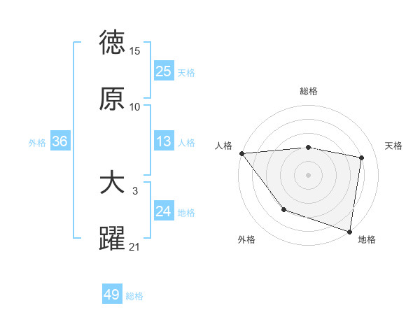 徳原 大躍さんを姓名の画数から五運を鑑定