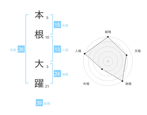 本根 大躍さんの総格は39画の5点!