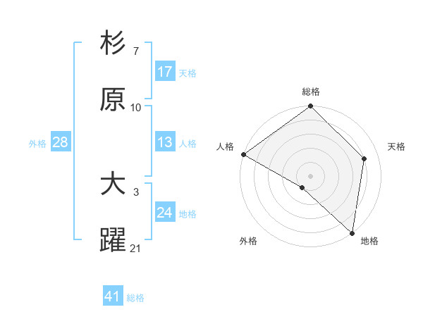 杉原 大躍さんの総格は41画の5点!