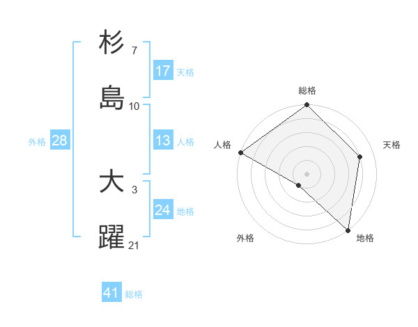 杉島 大躍さんを姓名の画数から五運を鑑定