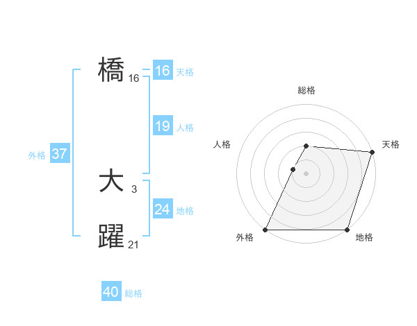 橋 大躍さんの総格は40画の2点!