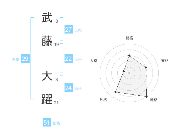 武藤 大躍さんを姓名の画数から五運を鑑定