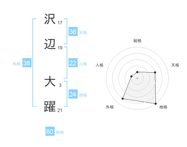 沢辺 大躍さんの外格は38画の4点!