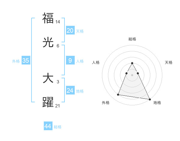 福光 大躍さんの総格は44画の2点!