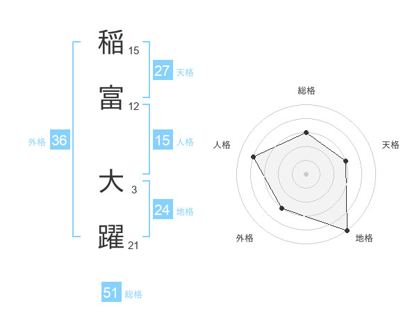 稲富 大躍さんを姓名の画数から五運を鑑定