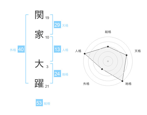 関家 大躍さんの総格は53画の3点!
