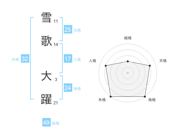 雪歌 大躍さんの外格は32画の5点!