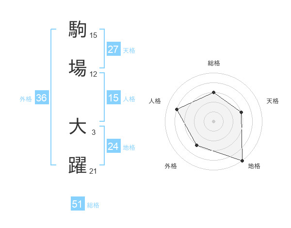 駒場 大躍さんを姓名の画数から五運を鑑定