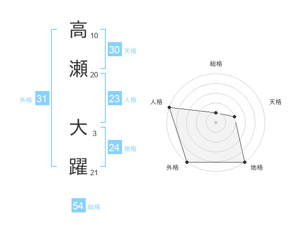 高瀬 大躍さんの外格は31画の5点!