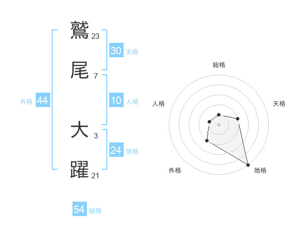 鷲尾 大躍さんの総格は54画の1点!