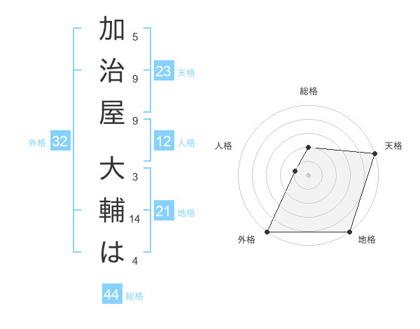 加治屋 大輔はさんを姓名の画数から五運を鑑定